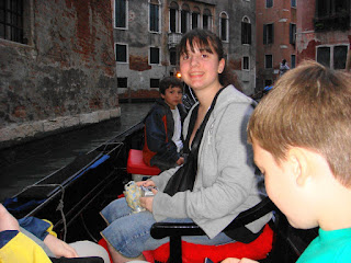 Our family went back to the hotel at this point, apparently on the slow boat. We had dinner, then went back into Venice for our group's gondola ride. We had a singer and musicians, and it was quite fun overall.