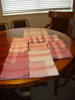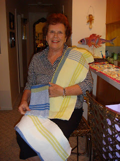 Finally Doreen received some towels, which unfortunately are on the same memory card as BJ's scarf so I don't have a picture of them to share. They are also on a previous blog entry though. M&O towels, they are called. In gold, green and rust.